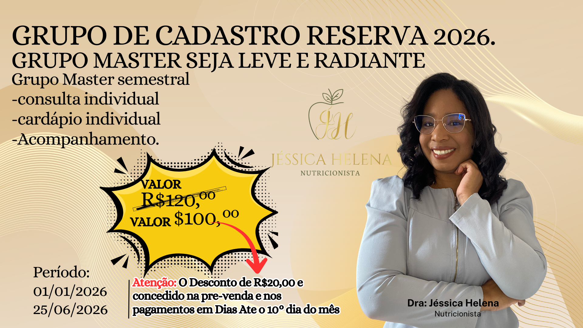 O programa é conduzido pela Dra. Jéssica Helena, Nutricionista.